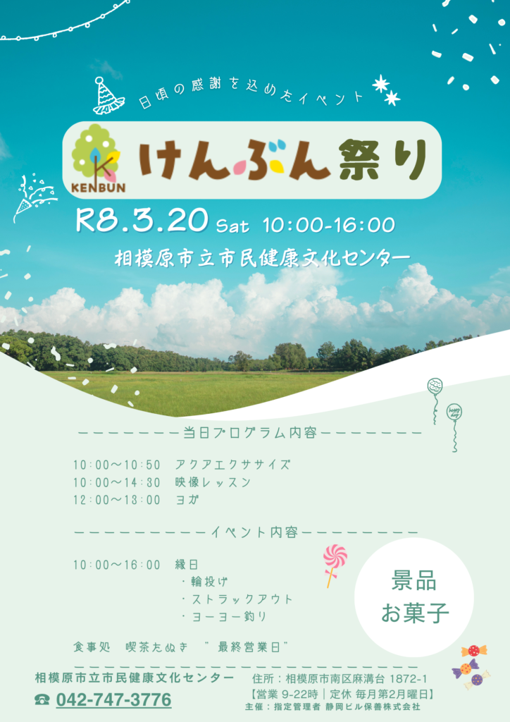 3月20日(金・春分の日)に、当施設にて「けんぶん祭り」を開催いたします。